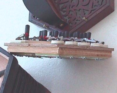 When you remove the plate on which the action sits you find the major innovation. The concertina doesn't use a conventional reed pan. Instead the reeds are mounted on the other side of the action plate. Action and reed-pan are one unified unit. The reeds are held in place by wax, as per accordions. This means that if you have problems with the reeds of this concertina then an accordion repairman should feel at home.